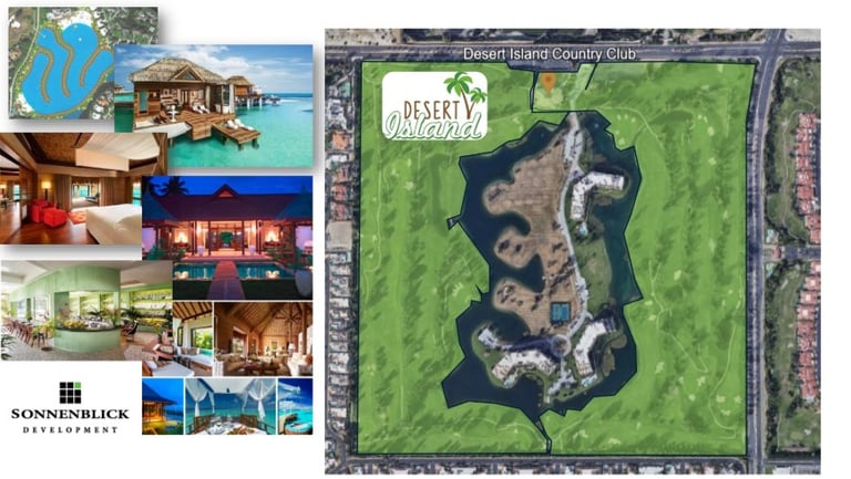 Desert Island St. Regis Hotel and Branded Residence Lots Project Overview: The Desert Island St. Regis Hotel and Branded Residence Lots is a premier real estate development project situated in Palm Desert, CA. The 100-acre site includes an existing golf course and a 40,000 sq ft clubhouse. The development plan includes the construction of 150 luxury hotel villas under the St. Regis brand, surrounding a 25-acre lagoon with a Crystal Lagoon-type beach. Additionally, 25 exclusive St. Regis-branded residence lots will be developed, offering high-end living options in a world-class setting. The project will also feature a remodeled clubhouse, an executive golf course, and a signature restaurant.